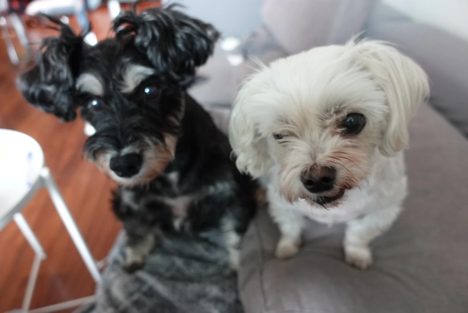 Maru(left), 11 years old male Miniature Schnauzer, Kiwi(right), 13 years old male Maltese.